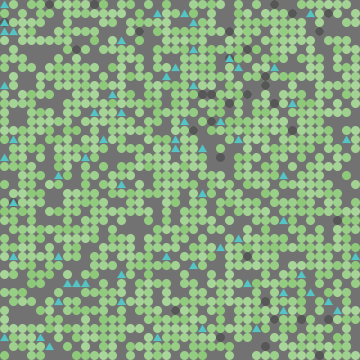 breed [agents agent] breed [cops cop] globals [ k ; factor for determining arrest probability threshold ; by how much must G > N to make someone rebel? ] agents-own [ risk-aversion ; R, fixed for the agent's lifetime, ranging from 0-1 (inclusive) perceived-hardship ; H, also ranging from 0-1 (inclusive) active? ; if true, then the agent is actively rebelling jail-term ; how many turns in jail remain? (if 0, the agent is not in jail) ] patches-own [ neighborhood ; surrounding patches within the vision radius ] to setup clear-all ;; set globals set k 2.3 set threshold 0.1 ask patches [ ;; make background a slightly dark gray set pcolor gray - 1 ;; cache patch neighborhoods set neighborhood patches in-radius vision ] ;; create cops create-cops round (initial-cop-density * .01 * count patches) [ move-to one-of patches with [not any? turtles-here] display-cop ] ;; create agents create-agents round (initial-agent-density * .01 * count patches) [ move-to one-of patches with [not any? turtles-here] set heading 0 set risk-aversion random-float 1.0 set perceived-hardship random-float 1.0 set active? false set jail-term 0 display-agent ] ;; start clock and plot initial state of system reset-ticks end to go ask turtles [ ; Rule M: Move to a random site within your vision if (breed = agents and jail-term = 0) or breed = cops [ move ] ; Rule A: Determine if each agent should be active or quiet if breed = agents and jail-term = 0 [ determine-behavior ] ; Rule C: Cops arrest a random active agent within their radius if breed = cops [ enforce ] ] ; Jailed agents get their term reduced at the end of each clock tick ask agents [ if jail-term > 0 [ set jail-term jail-term - 1 ] ] ; update agent display ask agents [ display-agent ] ask cops [ display-cop ] ; advance clock and update plots tick end ;; AGENT AND COP BEHAVIOR ;; move to an empty patch to move ;; turtle procedure if movement? or (breed = cops) [ ;; move to a patch in vision; candidate patches are ;; empty or contain only jailed agents let targets neighborhood with [not any? cops-here and all? agents-here [jail-term > 0]] if any? targets [ move-to one-of targets ] ] end ;; AGENT BEHAVIOR to determine-behavior set active? (grievance - risk-aversion * estimated-arrest-probability > threshold) end to-report grievance report perceived-hardship * (1 - government-legitimacy) end to-report estimated-arrest-probability let C count cops-on neighborhood let A 1 + count (agents-on neighborhood) with [active?] ;; See Info tab for a discussion of the following formula report 1 - exp (- k * floor (C / A)) end ;; COP BEHAVIOR to enforce if any? (agents-on neighborhood) with [active?] [ ;; arrest suspect let suspect one-of (agents-on neighborhood) with [active?] ask suspect [ set active? false set jail-term random max-jail-term ] move-to suspect ;; move to patch of the jailed agent ] end ;; VISUALIZATION OF AGENTS AND COPS to display-agent ;; agent procedure ifelse visualization = "2D" [ display-agent-2D ] [ display-agent-3D ] end to display-agent-2D ;; agent procedure set shape "circle" ifelse active? [ set color red ] [ ifelse jail-term > 0 [ set color black + 3 ] [ set color scale-color green grievance 1.5 -0.5 ] ] end to display-agent-3D ;; agent procedure set color scale-color green grievance 1.5 -0.5 ifelse active? [ set shape "person active" ] [ ifelse jail-term > 0 [ set shape "person jailed" ] [ set shape "person quiet" ] ] end to display-cop set color cyan ifelse visualization = "2D" [ set shape "triangle" ] [ set shape "person soldier" ] end ; Copyright 2004 Uri Wilensky. ; See Info tab for full copyright and license.