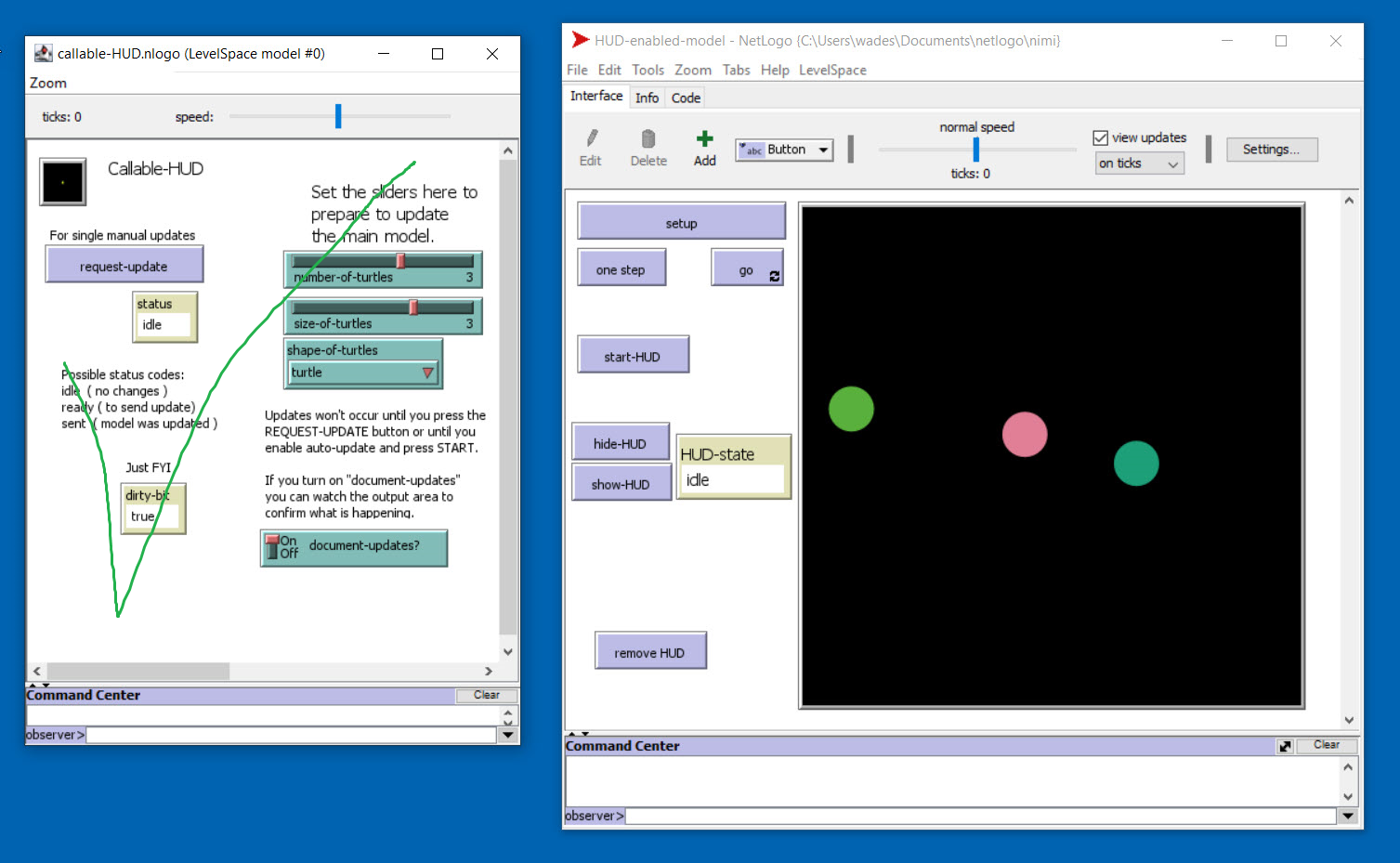 This is the companion model to HUD-enabled-model.nlogo. Both are required.