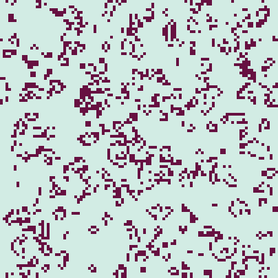 patches-own [ living? ;; indicates if the cell is living live-neighbors ;; counts how many neighboring cells are alive ] to setup-blank clear-all ask patches [ cell-death ] reset-ticks end to setup-random clear-all ask patches [ ifelse random-float 100.0 < initial-density [ cell-birth ] [ cell-death ] ] reset-ticks end to cell-birth set living? true set pcolor fgcolor end to cell-death set living? false set pcolor bgcolor end to go ask patches [ set live-neighbors count neighbors with [living?] ] ;; Starting a new "ask patches" here ensures that all the patches ;; finish executing the first ask before any of them start executing ;; the second ask. This keeps all the patches in synch with each other, ;; so the births and deaths at each generation all happen in lockstep. ask patches [ ifelse live-neighbors = 3 [ cell-birth ] [ if live-neighbors != 2 [ cell-death ] ] ] tick end to draw-cells let erasing? [living?] of patch mouse-xcor mouse-ycor while [mouse-down?] [ ask patch mouse-xcor mouse-ycor [ ifelse erasing? [ cell-death ] [ cell-birth ] ] display ] end ; Copyright 1998 Uri Wilensky. ; See Info tab for full copyright and license.