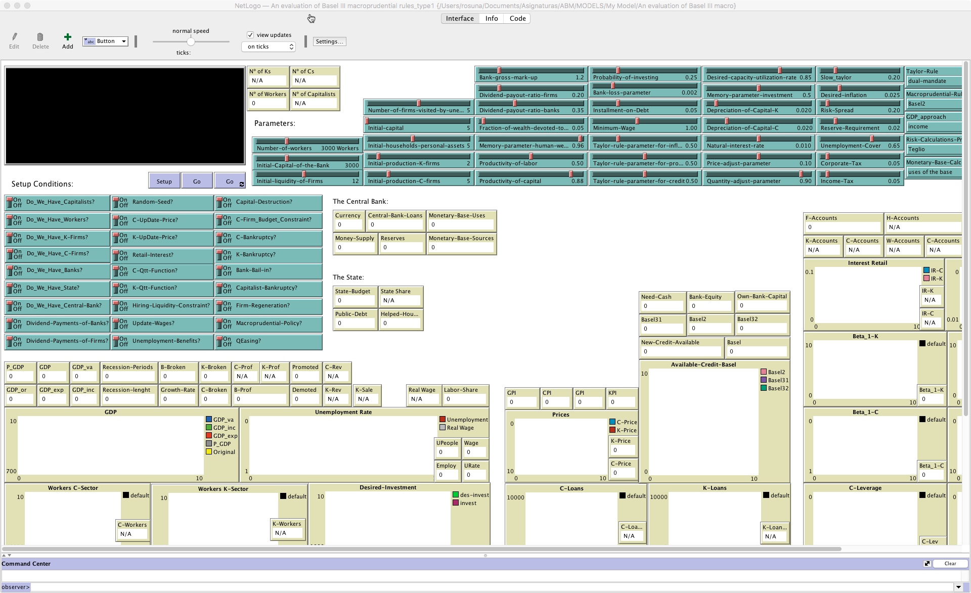 This is the first version of the model, but we already can see some interesting things emerged in these simulations. For exemple, try to change a little the productivity of Labor - the first slider option - and take a look what happen with the series of the Unemployment rate below.